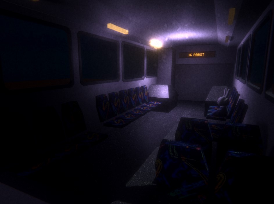 You're a plush bunny, exploring a bus in this short, ambient demo.